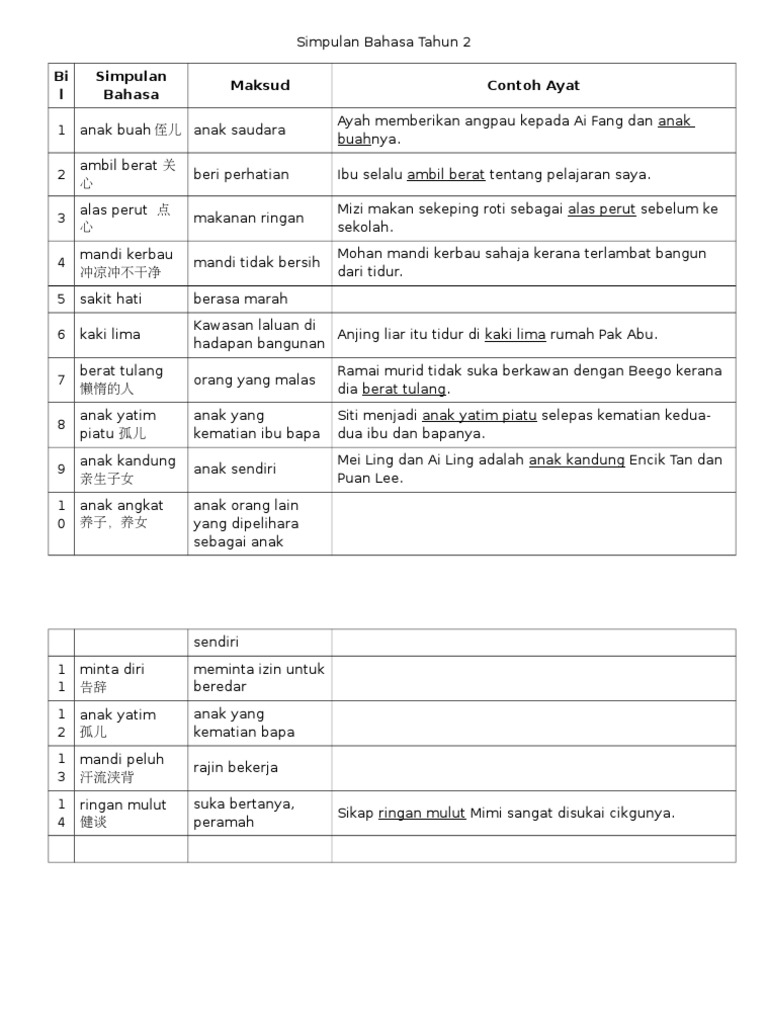 Contoh Ayat Simpulan Bahasa Tahun 2 Pdf